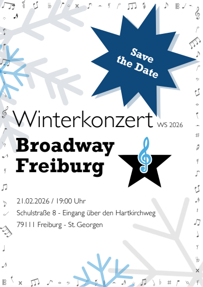 Willkommen auf der Website des Broadway Freiburg e.V.! Hier findest du alle Infos rund um unseren Chor.